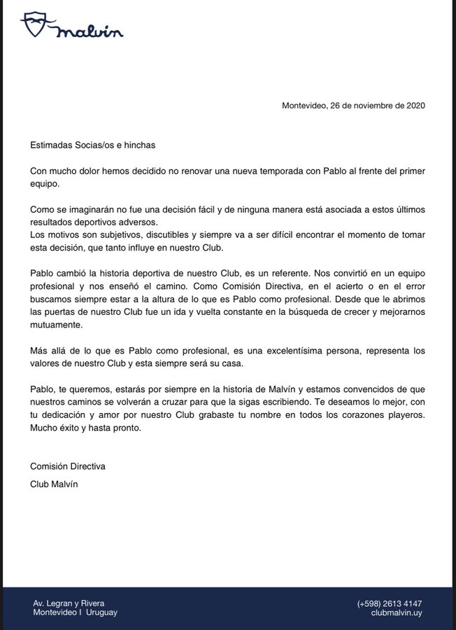 Tras 14 temporadas sucesivas como entrenador de Malvín, culminó el ciclo de Pablo López en el club, con quien ganó cinco títulos de Liga Uruguaya de básquetbol. En la institución playera, hay un antes y después de su paso por la institución.